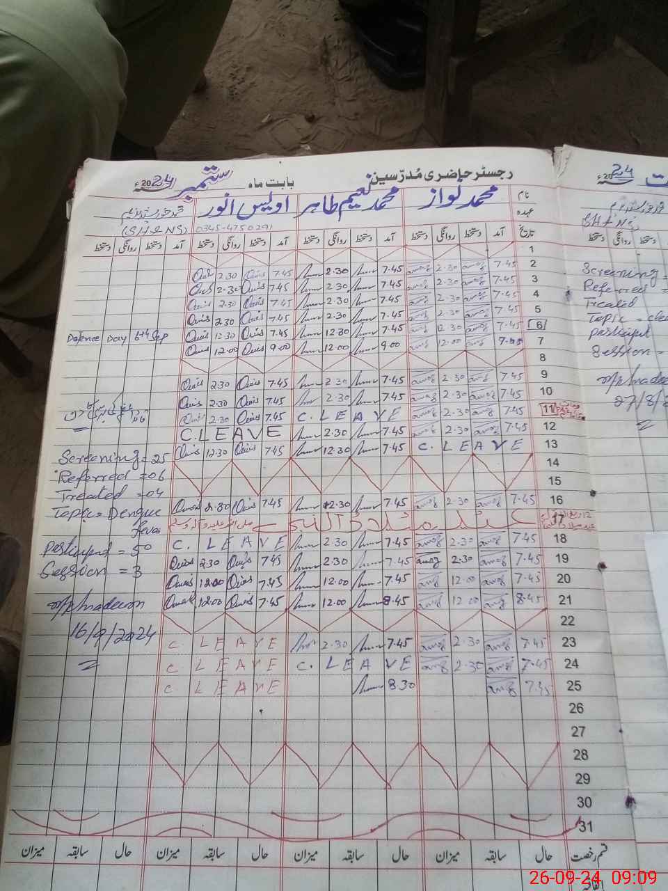 | Leave | Duty | Absent | Maternity | Medical | Ex- Pak |
