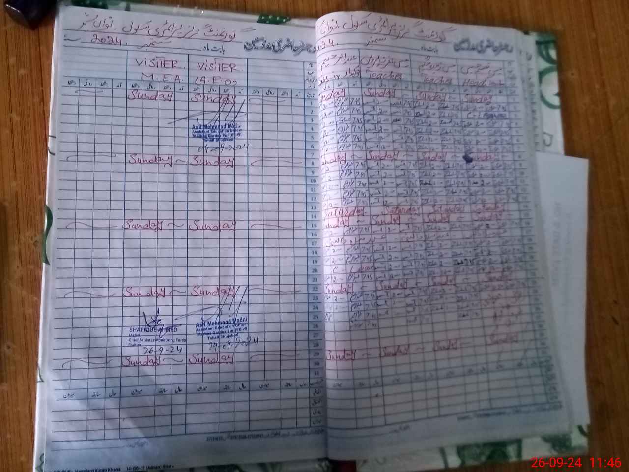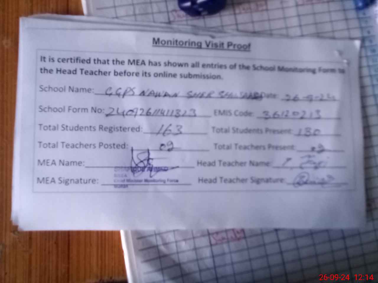 | Attendance Register | Head Teacher | MEA with School | Visit Proof |