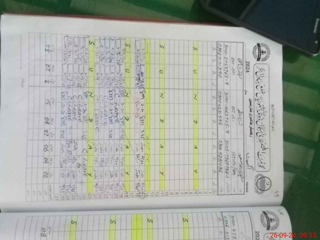| CNIC | Full Name | Designation | R/C | Absence During Last Calender Month |