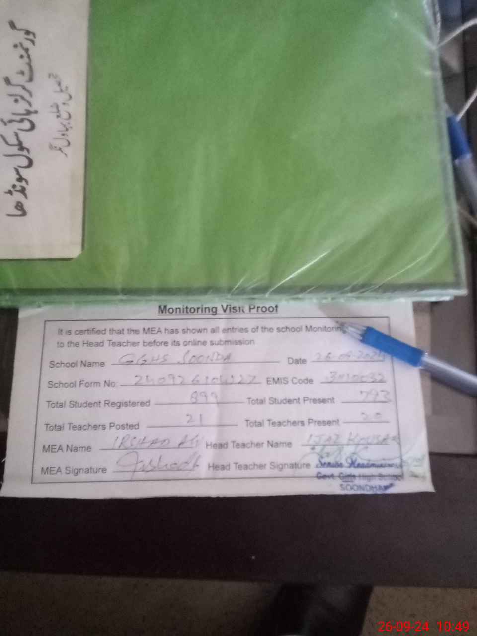 | EMIS Code: 31110032 | Name of School: GGHS SONDHA | |||