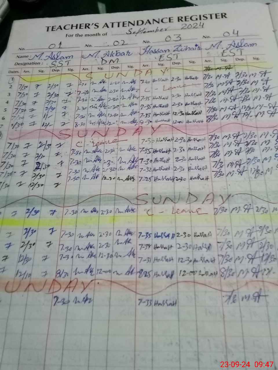 | CNIC | Full Name | Designation | R/C | Absence During Last Calender Month |