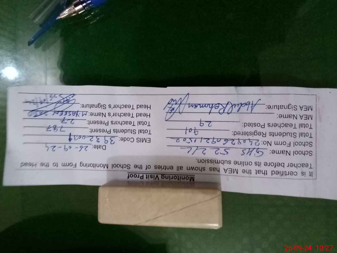 | Name: AH**** AA**** Designation: (School Headmaster's/Headmistress's) SST I/C Phone/Cell Number: 03**** |