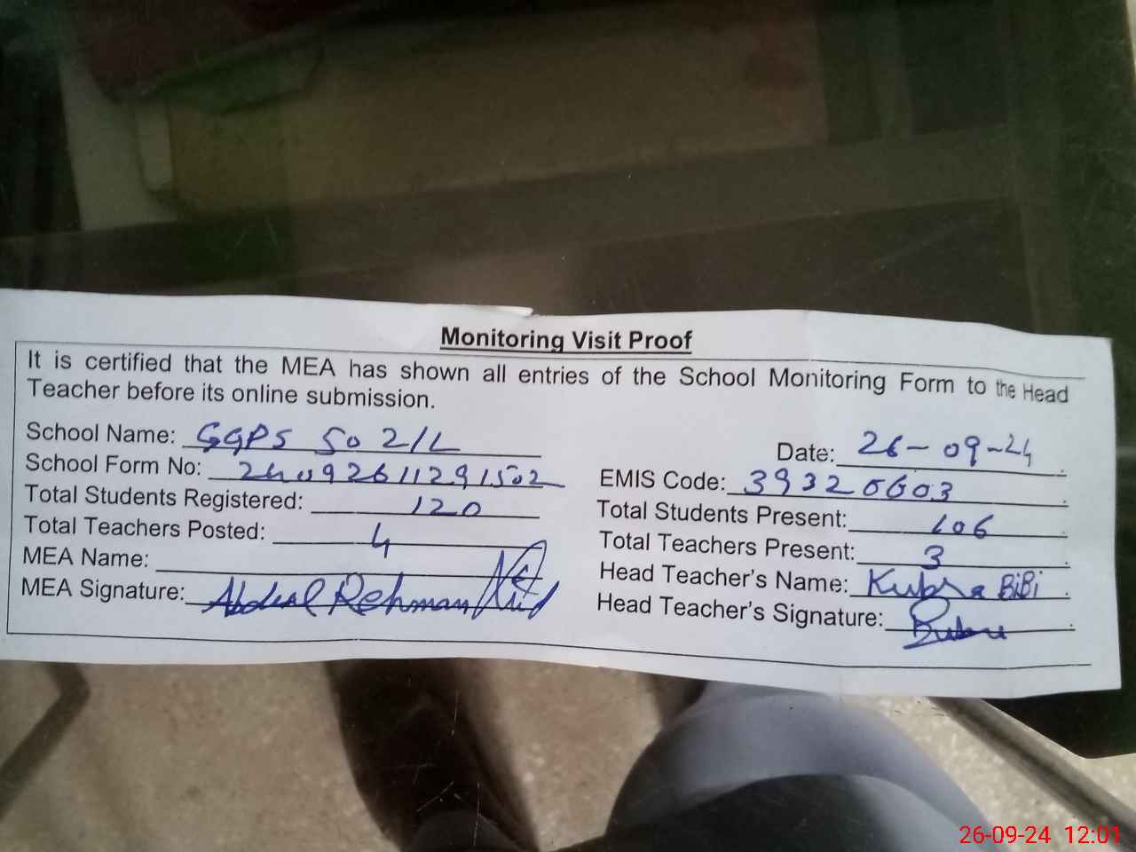 | Certified that this School was Inspected by the Undersigned MEA/DMO Today and the Information Stated Above is as Per Record. | |||||