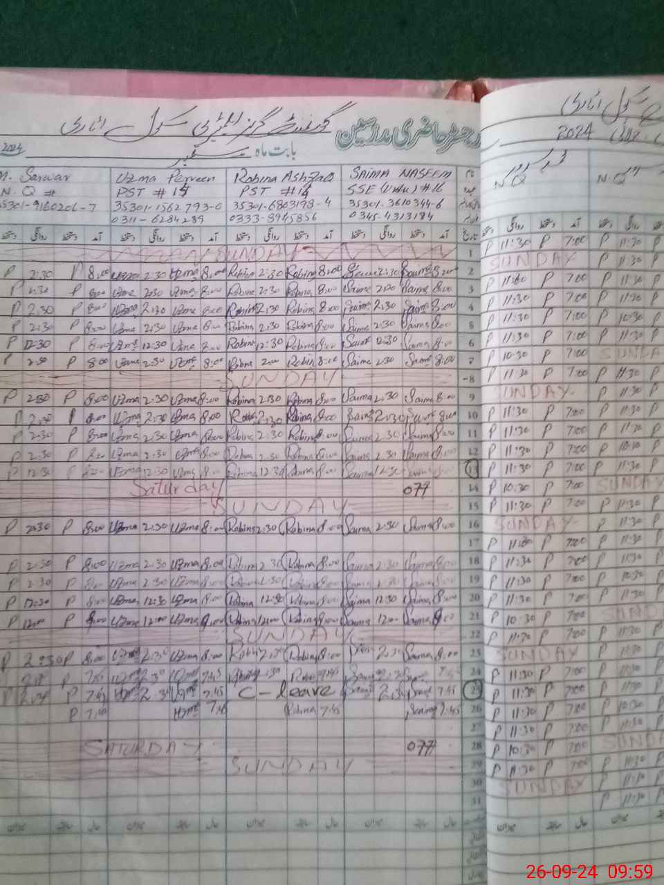 | CNIC | Full Name | Designation | R/C | Absence During Last Calender Month |