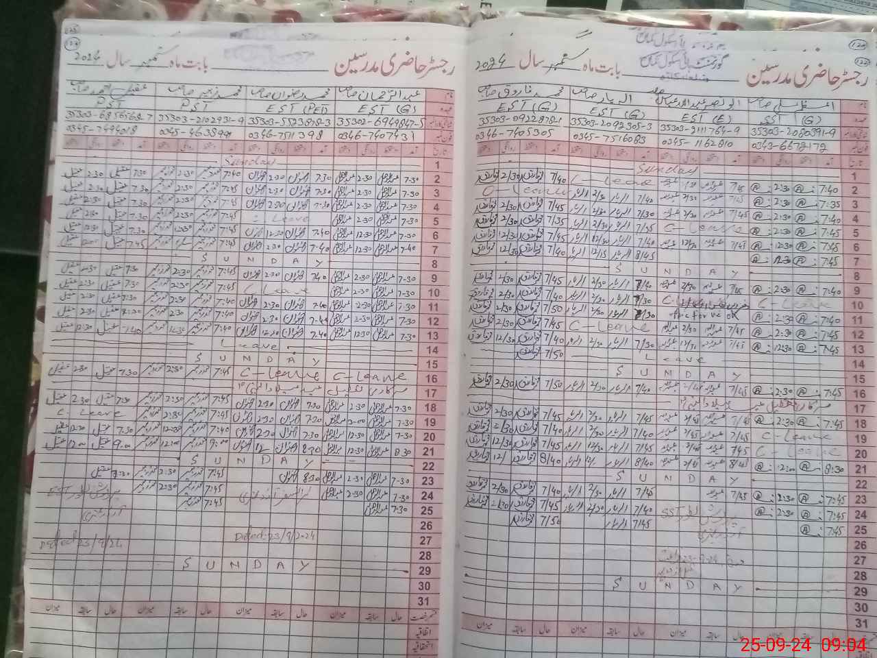 | CNIC | Full Name | Designation | R/C | Absence During Last Calender Month |