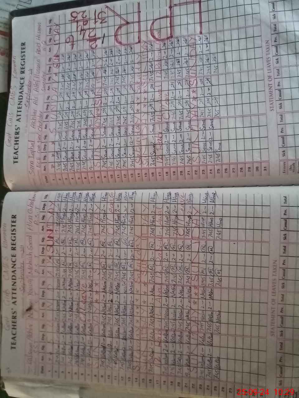 | Leave | Duty | Absent | Maternity | Medical | Ex- Pak |