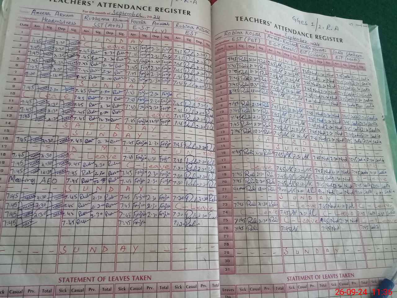 | Leave | Duty | Absent | Maternity | Medical | Ex- Pak |