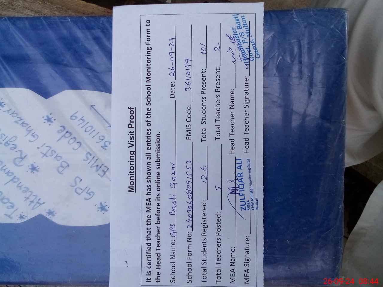 | EMIS Code: 36110149 | Name of School: GPS BASTI GHAZAR P/O MUZAFAARABAD | |||