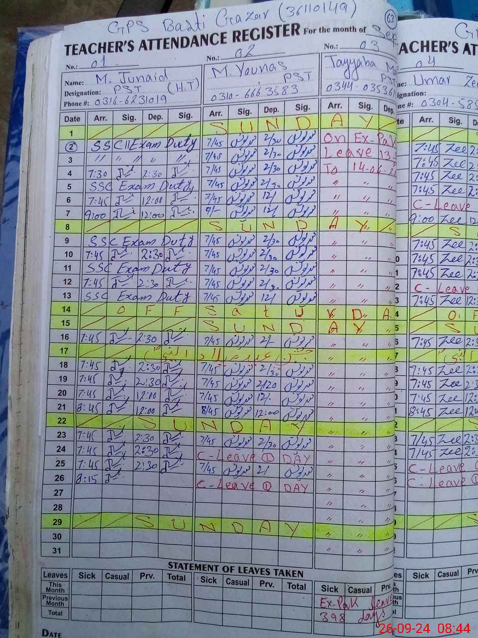 | Name: Um**** Ze**** Designation: (School Headmaster's/Headmistress's) HEADMASTER Phone/Cell Number: 03**** |