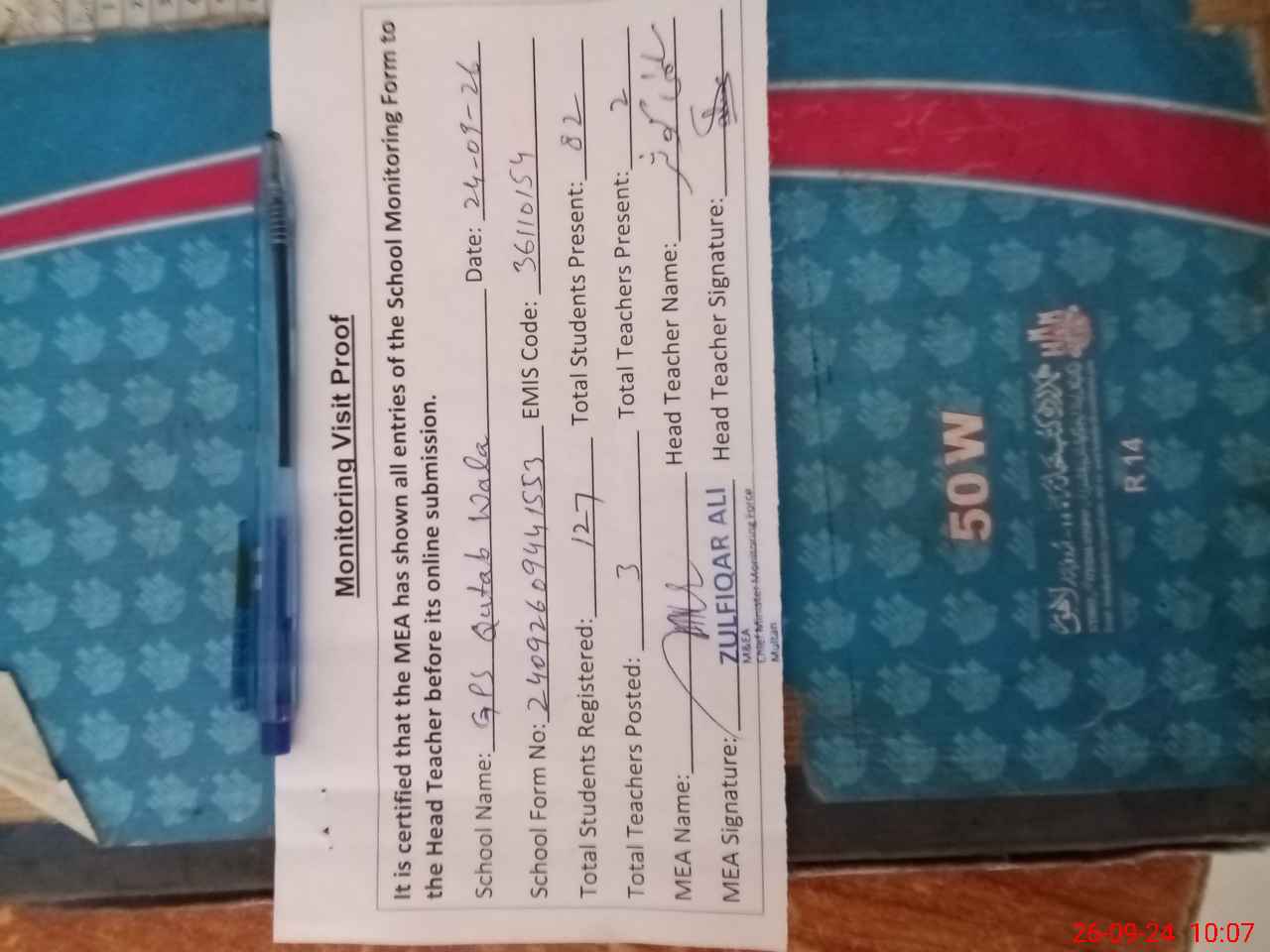 | EMIS Code: 36110154 | Name of School: GPS QUTTUB WALA ISMAIL ABAD P/O MULTAN | |||