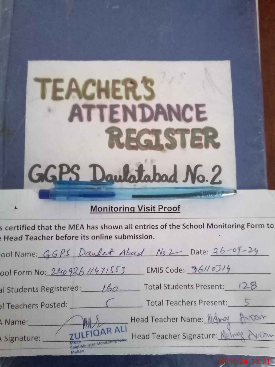 | EMIS Code: 36110314 | Name of School: GGPS DAULAT ABAD NO.2 MULTAN | |||