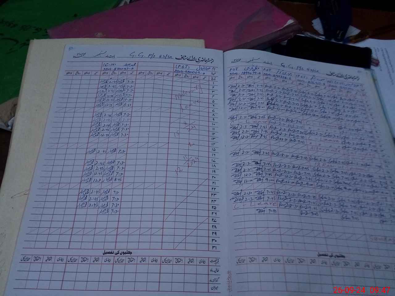 | Leave | Duty | Absent | Maternity | Medical | Ex- Pak |