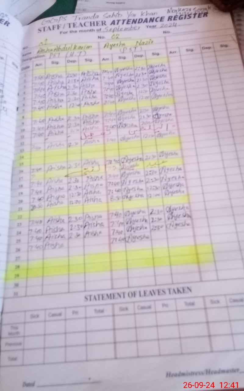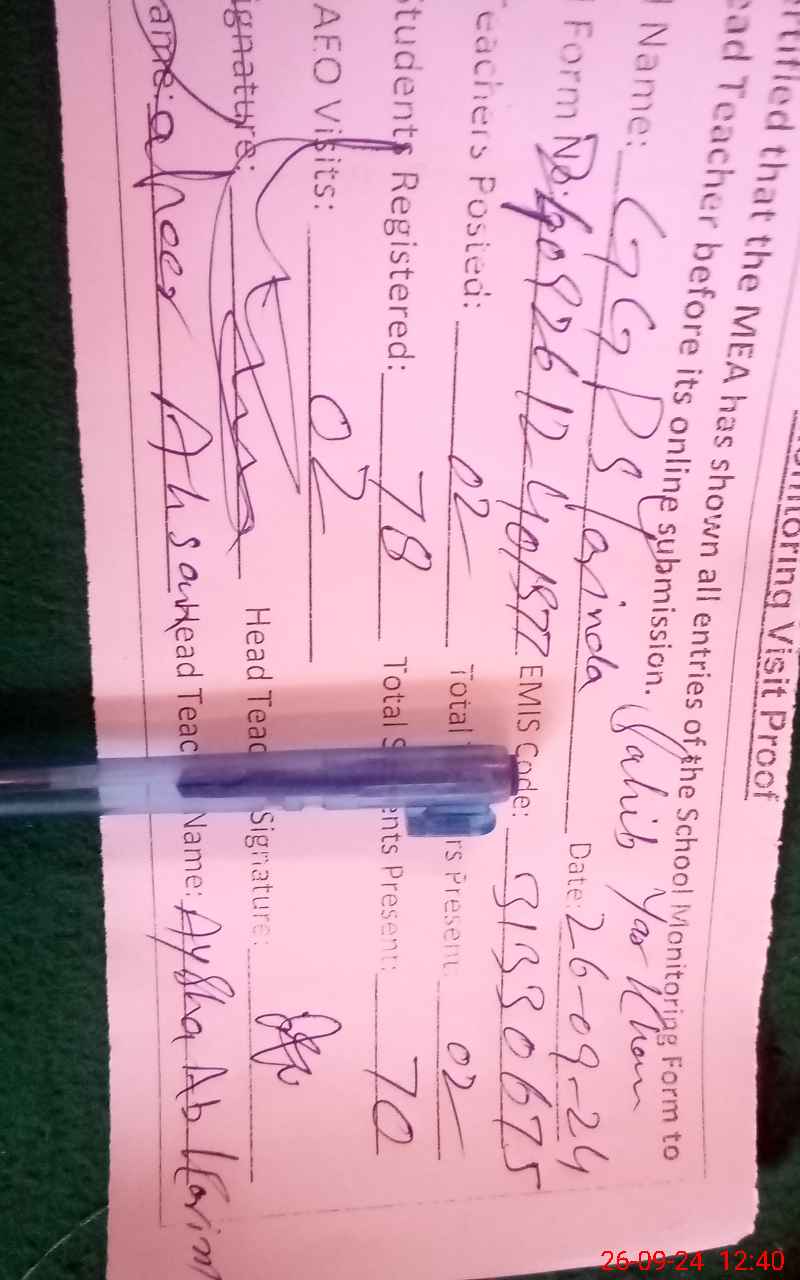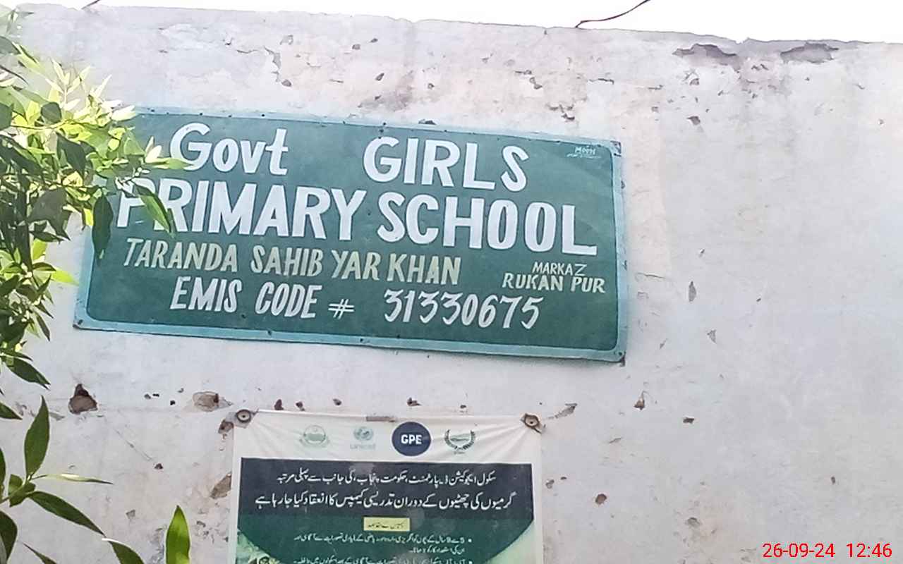 | EMIS Code: 31330675 | Name of School: GGPS TRANDA SAHIB YAR KHAN | |||