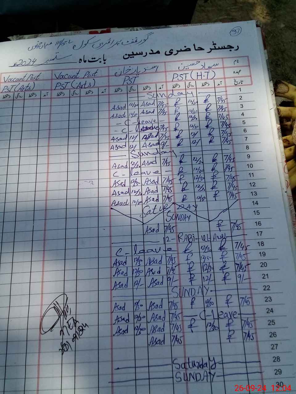 | Name: SA**** HU**** Designation: (School Headmaster's/Headmistress's) PST Phone/Cell Number: 03**** |
