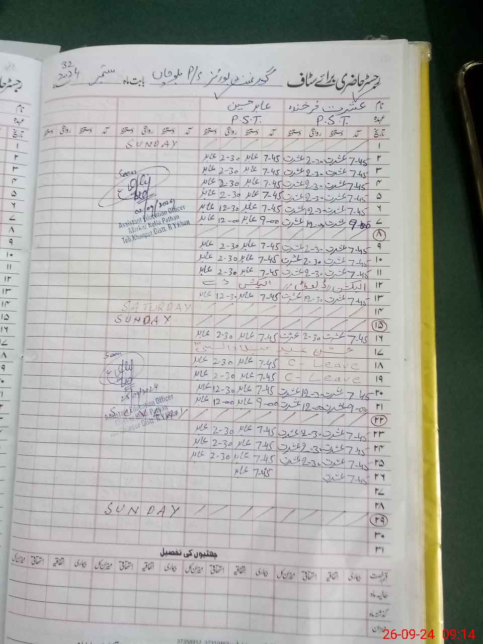| Name: Ab**** Hu**** Designation: (School Headmaster's/Headmistress's) PST Phone/Cell Number: 03**** |
