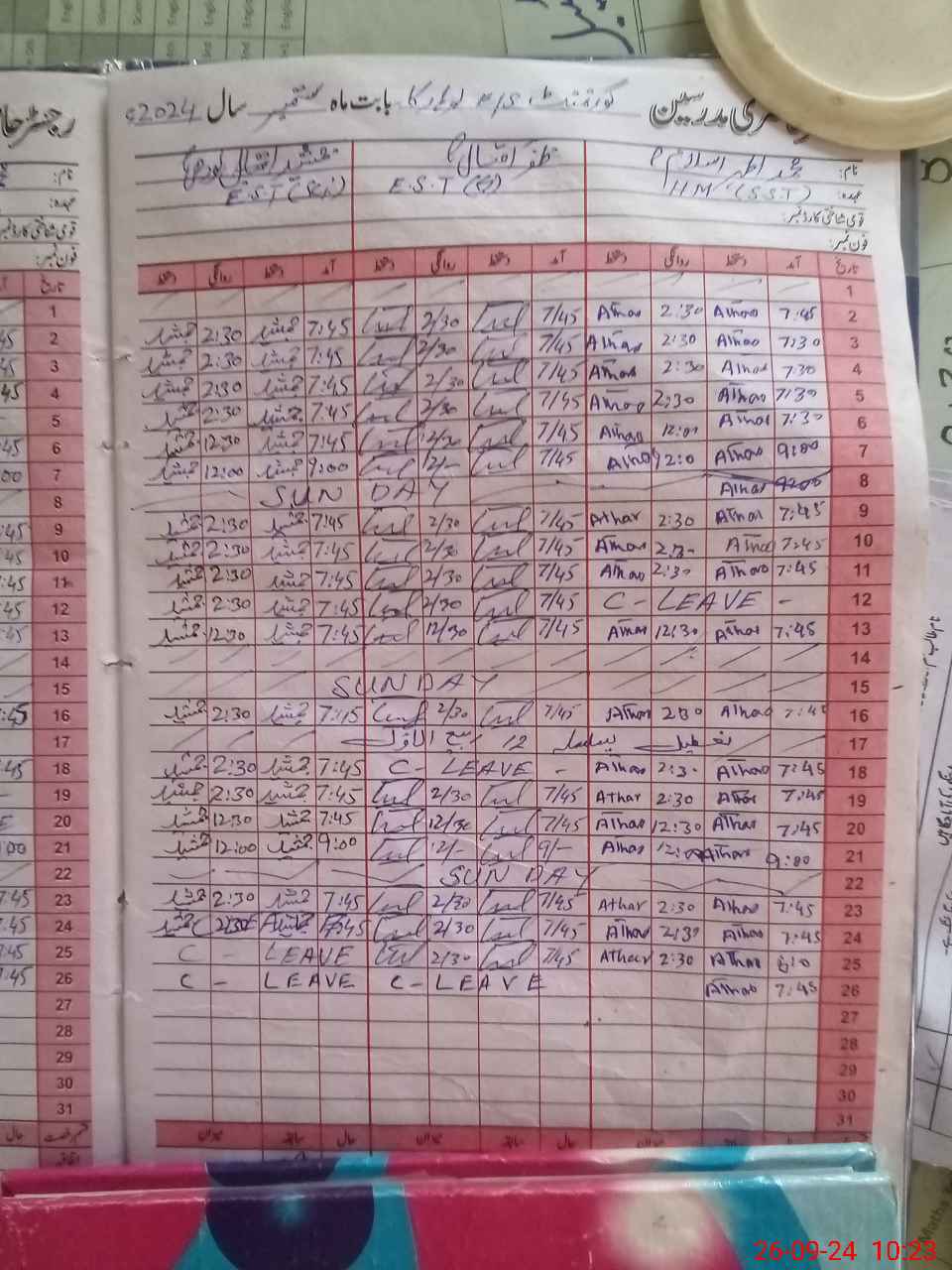 | Leave | Duty | Absent | Maternity | Medical | Ex- Pak |