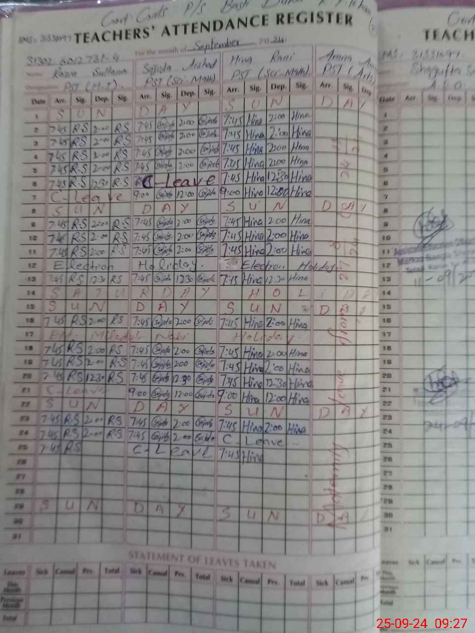 | 31**** | Sa**** Ar**** | PST | Regular | 2 | 0 | 0 | 0 | 0 | 0 | 0 | 0 | 2 | Casual |