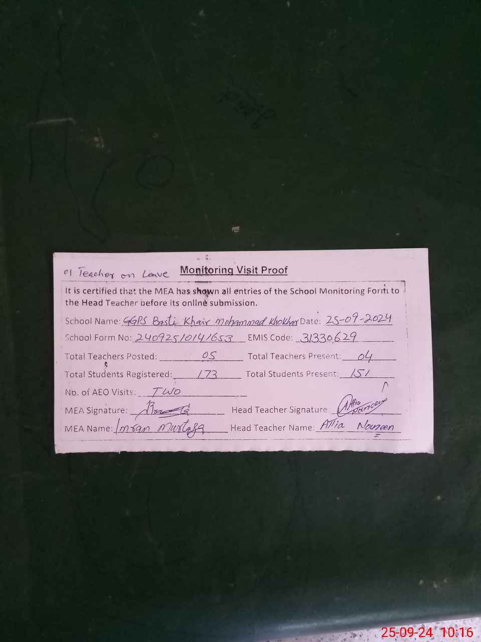 | EMIS Code: 31330629 | Name of School: GGPS BASTI KHAIR MUHAMMAD KHOKHAR | |||