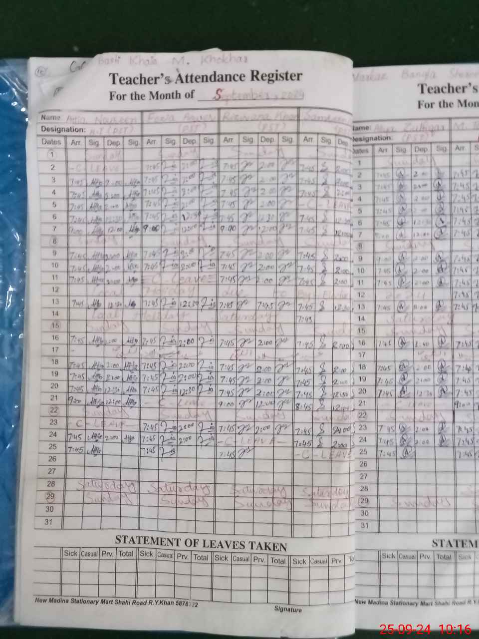 | Leave | Duty | Absent | Maternity | Medical | Ex- Pak |