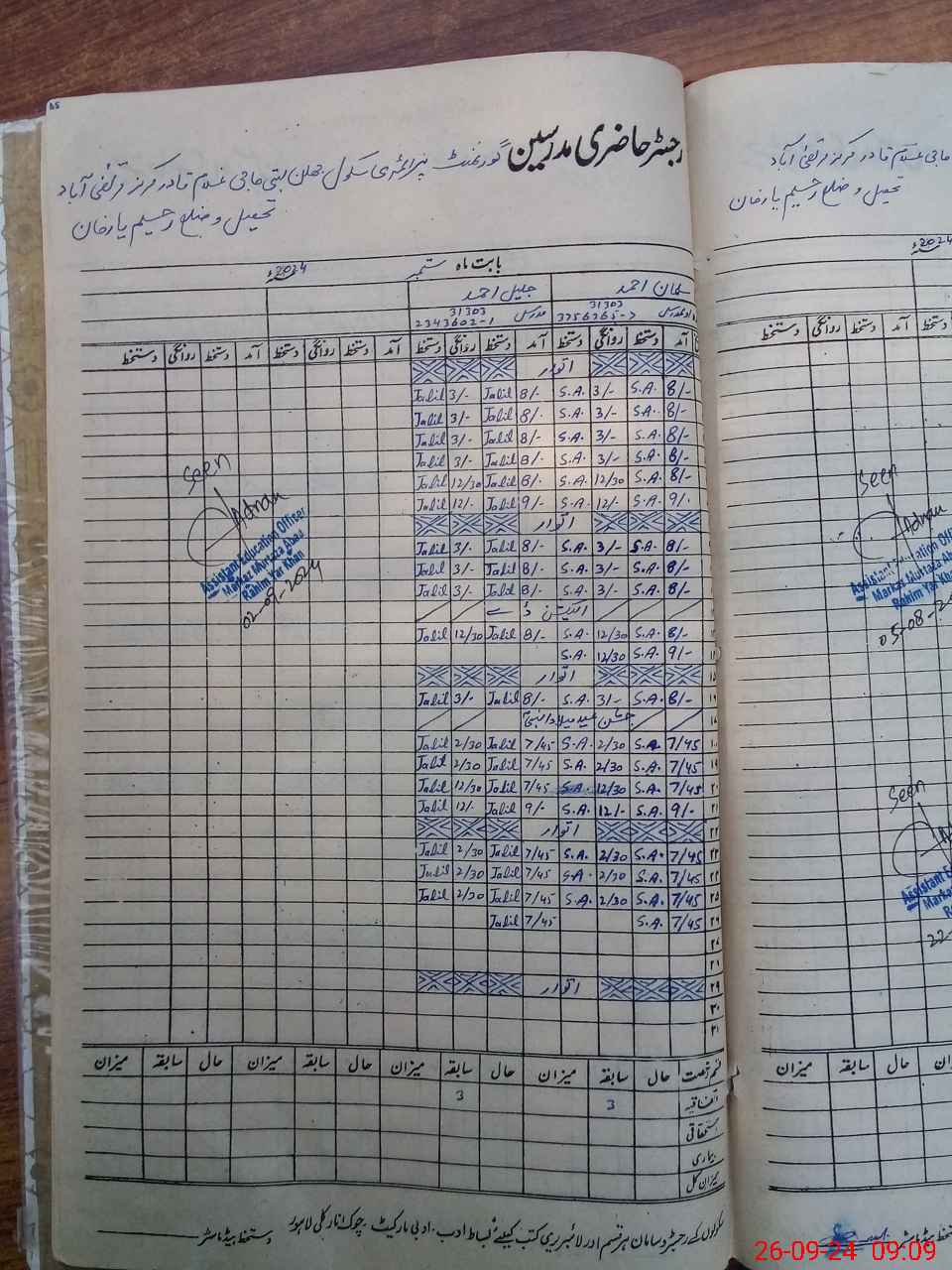 | CNIC | Full Name | Designation | R/C | Absence During Last Calender Month |
