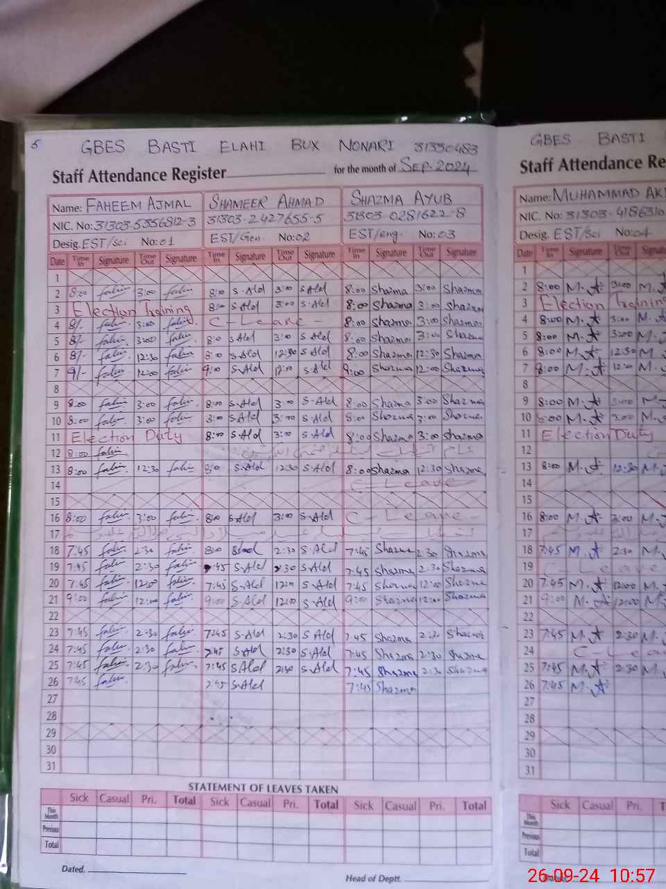 | CNIC | Full Name | Designation | R/C | Absence During Last Calender Month |