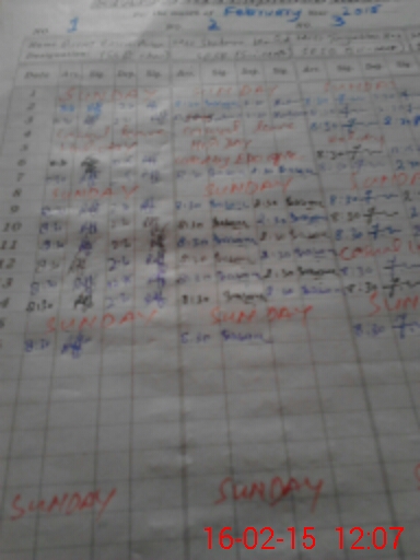 | CNIC | Full Name | Designation | R/C | Absence During Last Calender Month |