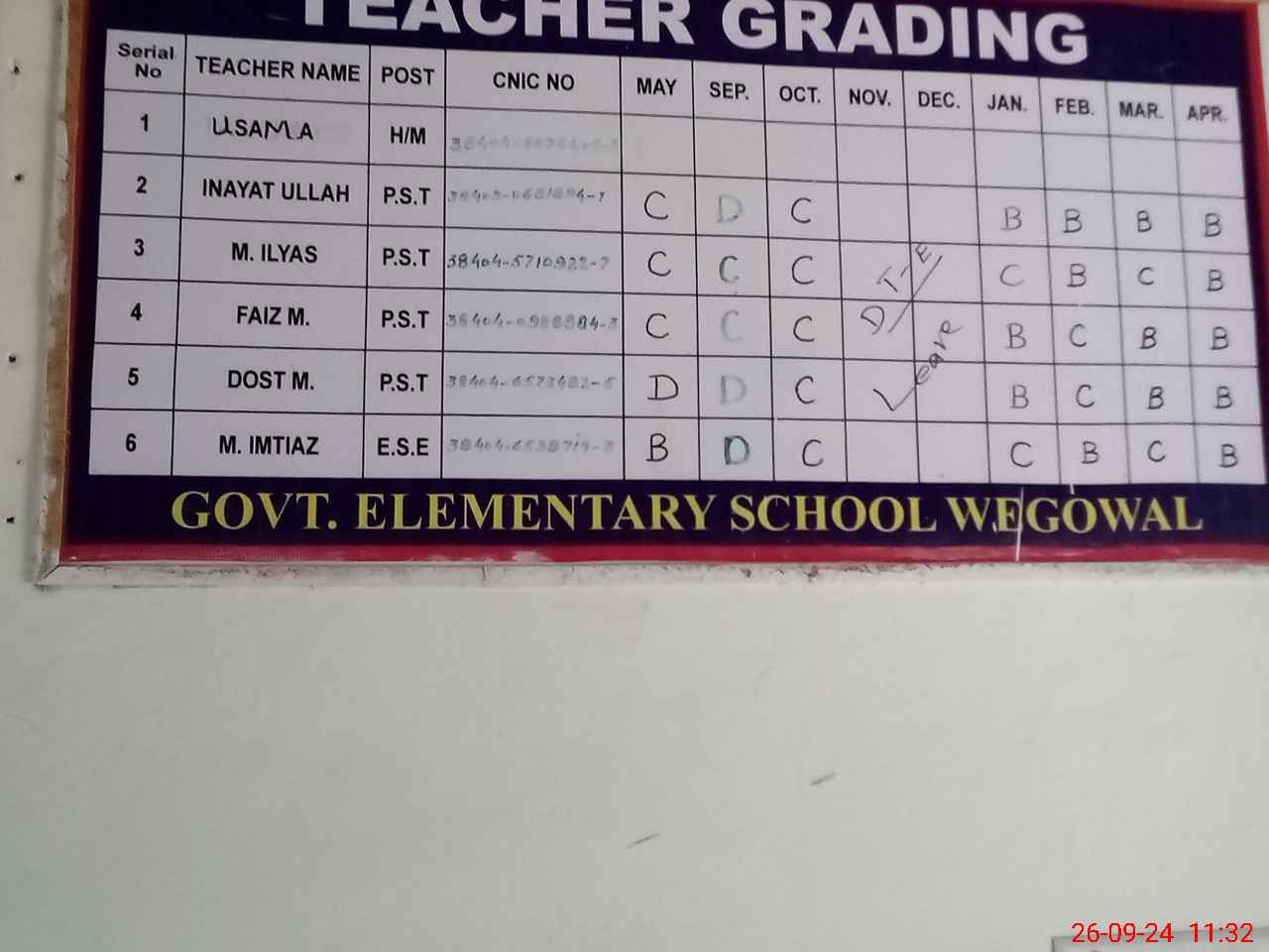 | District: SARGODHA | Tehsil: SHAHPUR | Markaz: WEGOWAL - MALE | Level: Middle | |