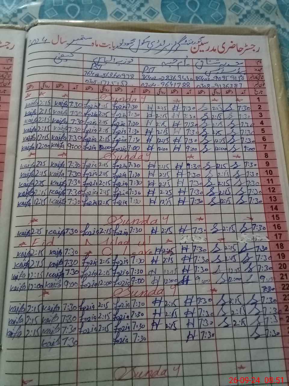 | Name: SA**** MU**** Designation: (School Headmaster's/Headmistress's) PST Phone/Cell Number: 03**** |