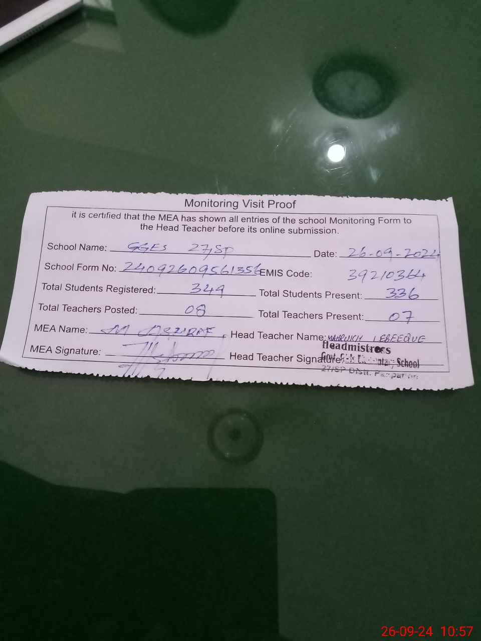 | EMIS Code: 39210364 | Name of School: GGES 27 SP | |||
