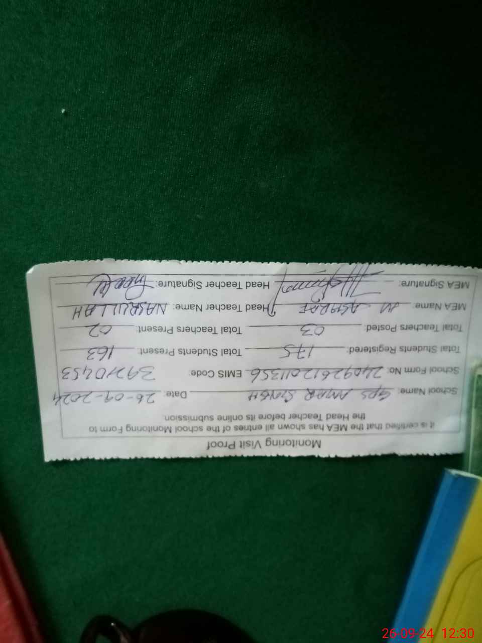 | EMIS Code: 39210453 | Name of School: GPS AMAR SINGH P/O 26/S.P PAKPATTAN | |||