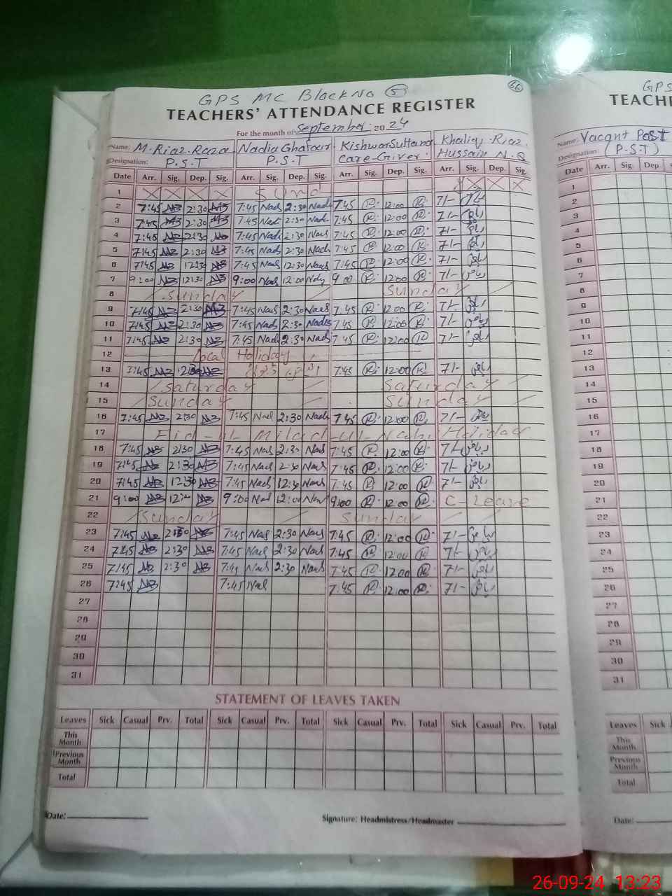 | Name: Ri**** Al**** Designation: (School Headmaster's/Headmistress's) PST Phone/Cell Number: 03**** |