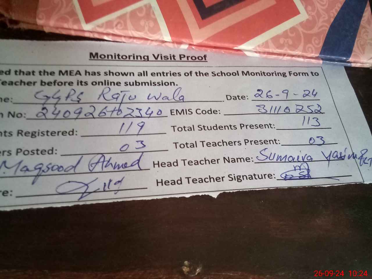 | EMIS Code: 31110292 | Name of School: GGPS RAJU WALA | |||