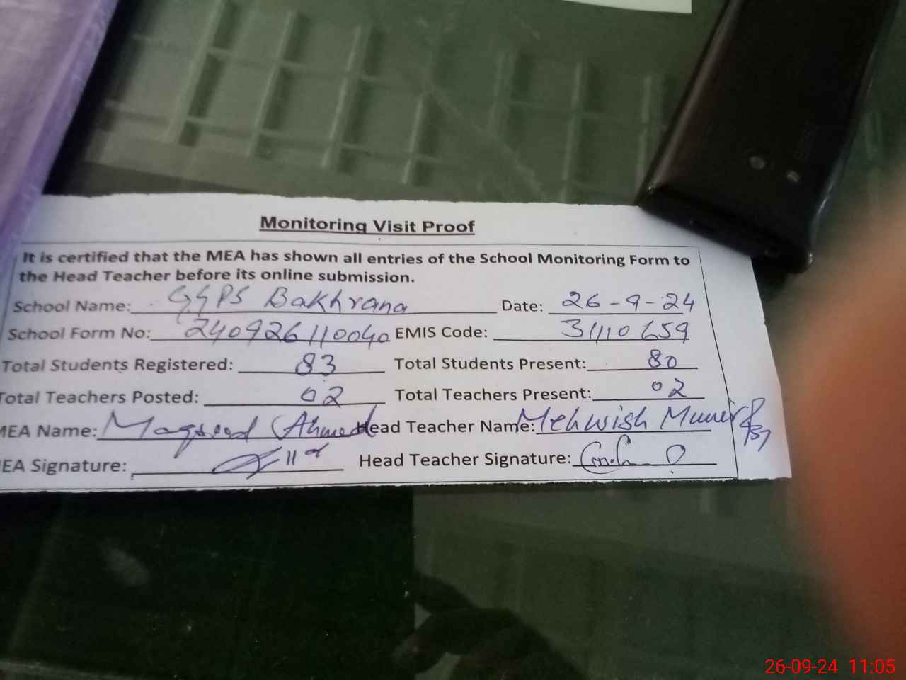 | EMIS Code: 31110659 | Name of School: GGPS BAKHRANA | |||