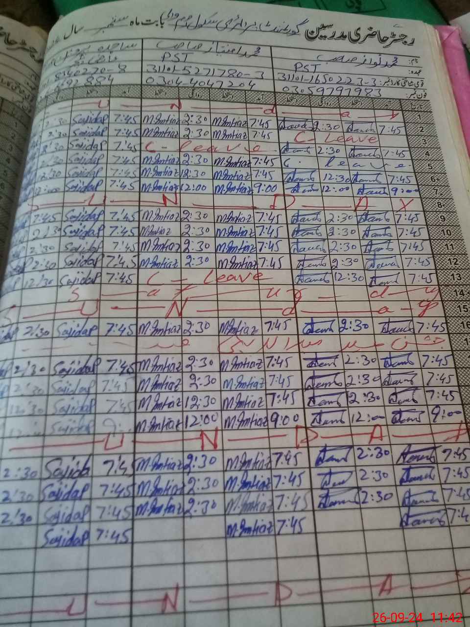 | Leave | Duty | Absent | Maternity | Medical | Ex- Pak |