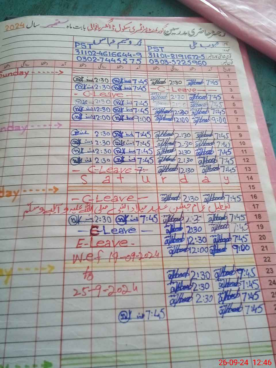 | Leave | Duty | Absent | Maternity | Medical | Ex- Pak |