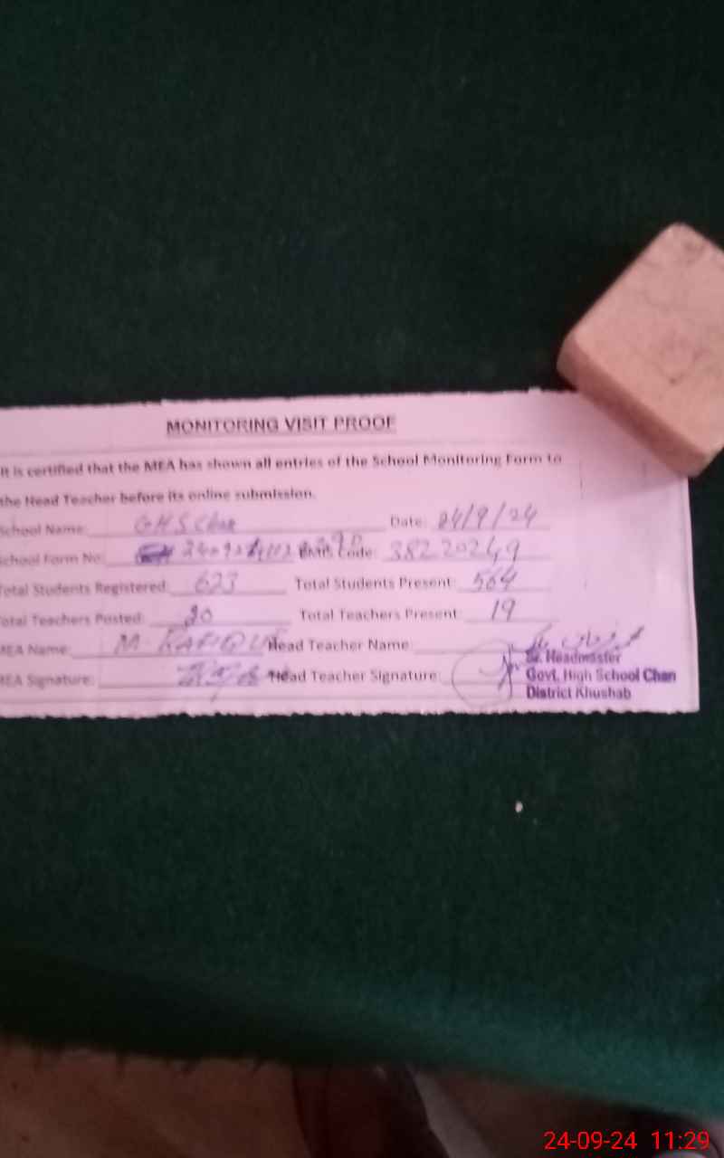| EMIS Code: 38220249 | Name of School: GHS CHAN | |||