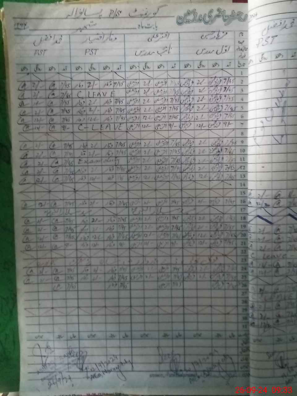 | CNIC | Full Name | Designation | R/C | Absence During Last Calender Month |