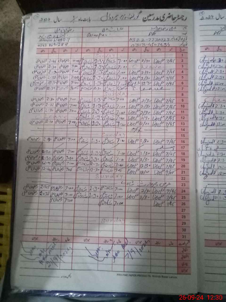 | CNIC | Full Name | Designation | R/C | Absence During Last Calender Month |
