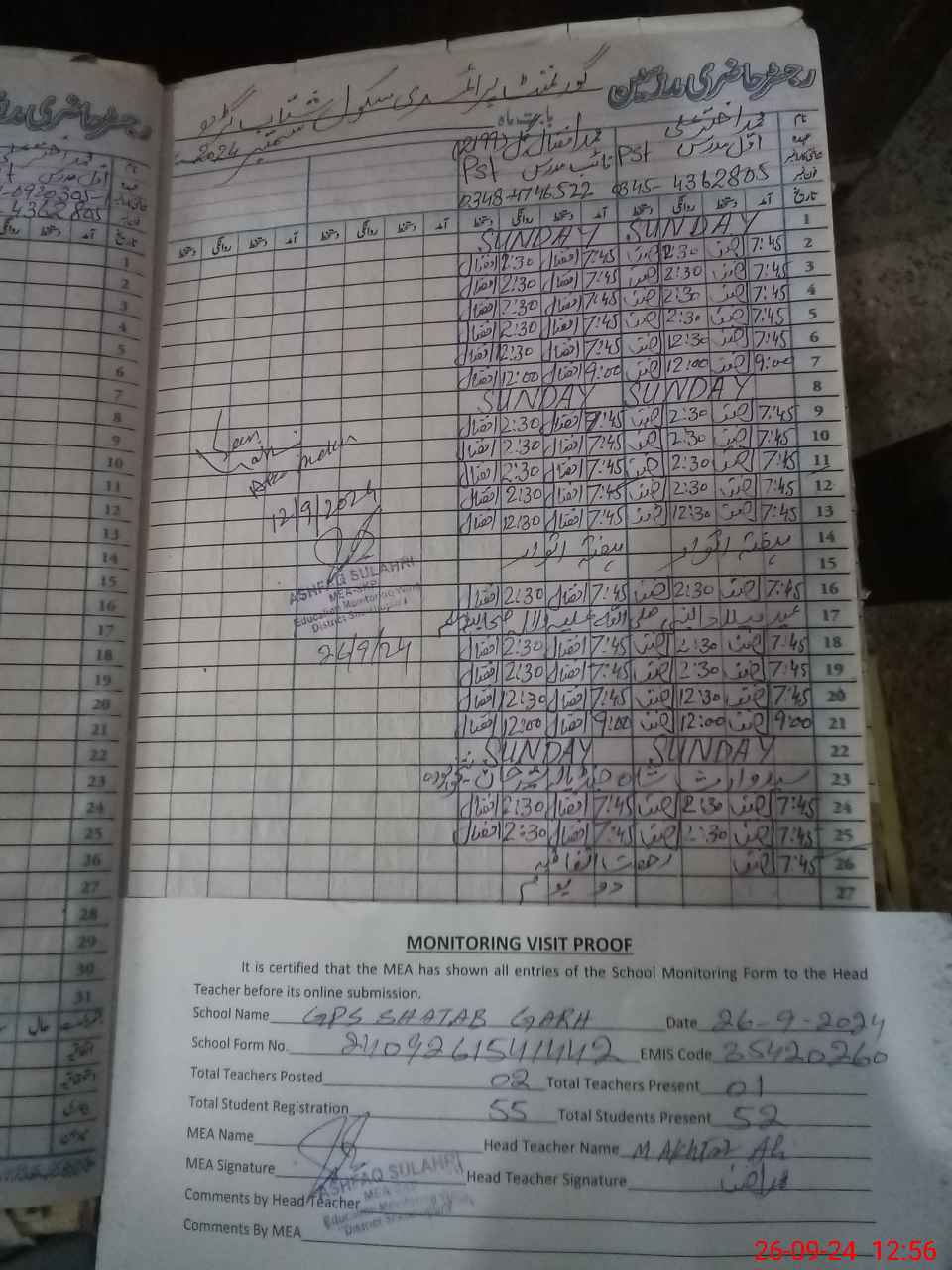 | EMIS Code: 35420260 | Name of School: GPS SHATAB GARH | |||