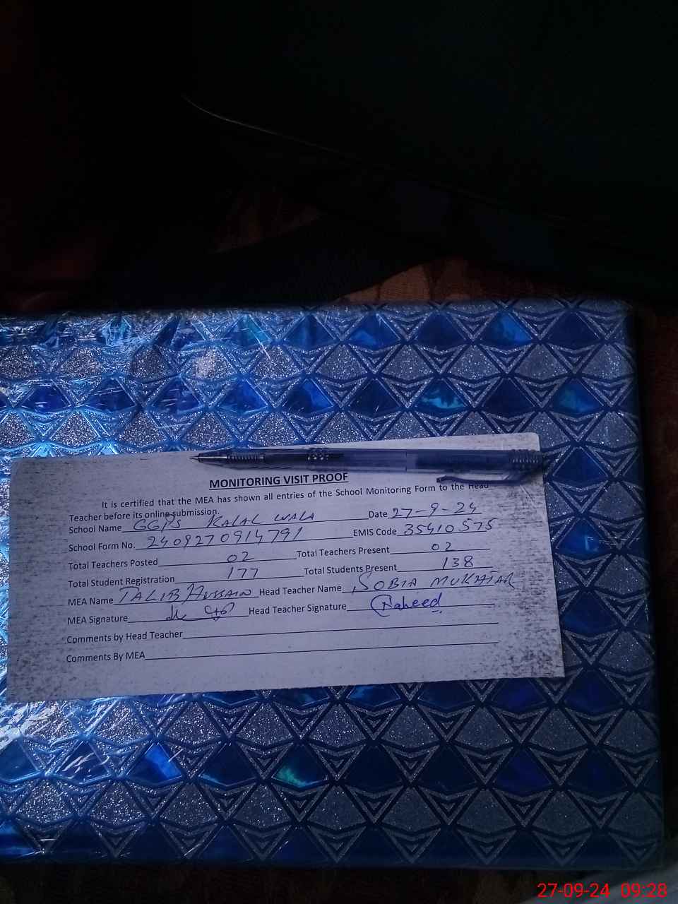| EMIS Code: 35410575 | Name of School: GGPS KALAL WALA | |||