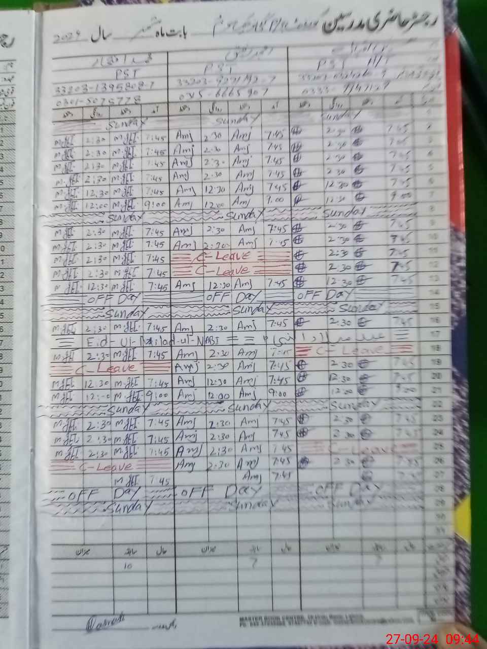 | CNIC | Full Name | Designation | R/C | Absence During Last Calender Month |