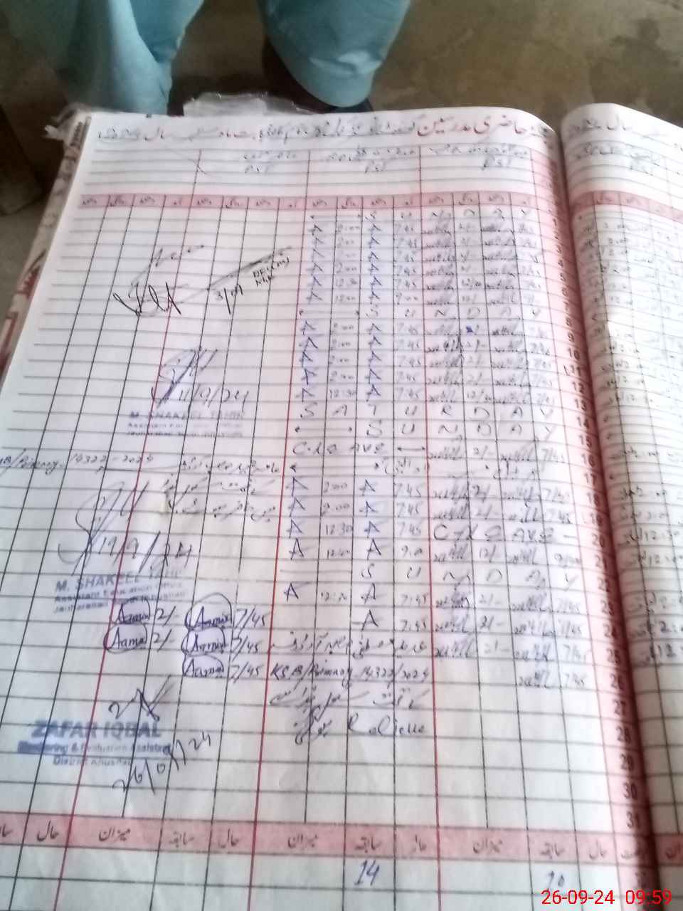 | CNIC | Full Name | Designation | R/C | Absence during last cal. month |