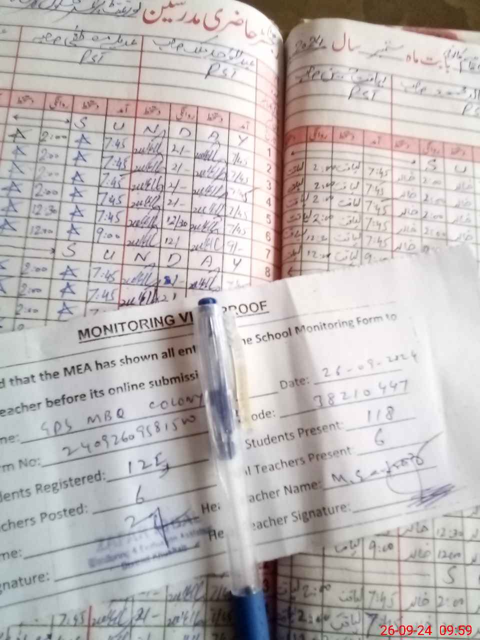 | Attendance Register | Head Teacher | MEA with School | Visit Proof |