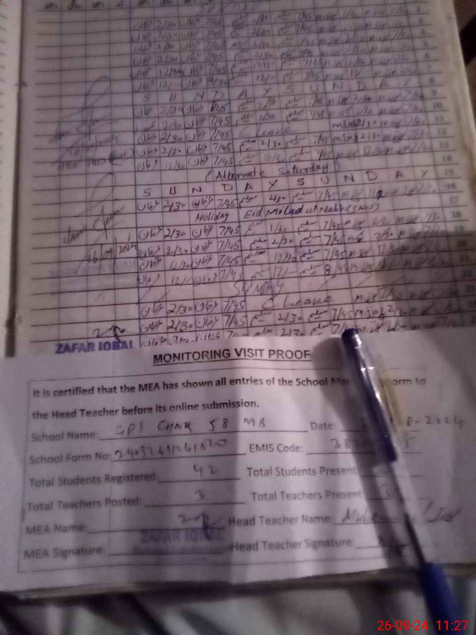 | EMIS Code: 38210265 | Name of School: GPS CHAK NO. 58 MB | |||