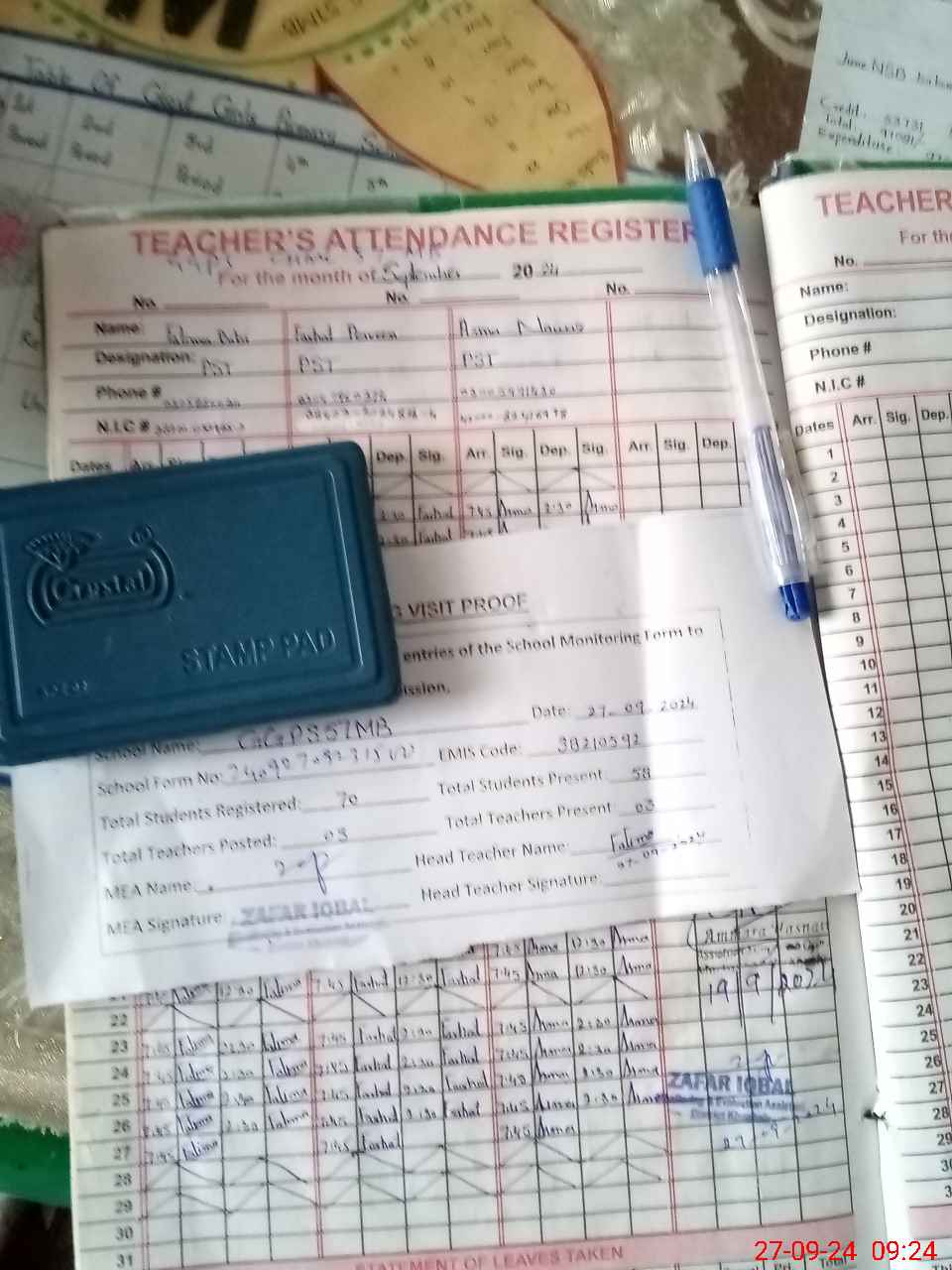 | Attendance Register | Head Teacher | MEA with School | Visit Proof |
