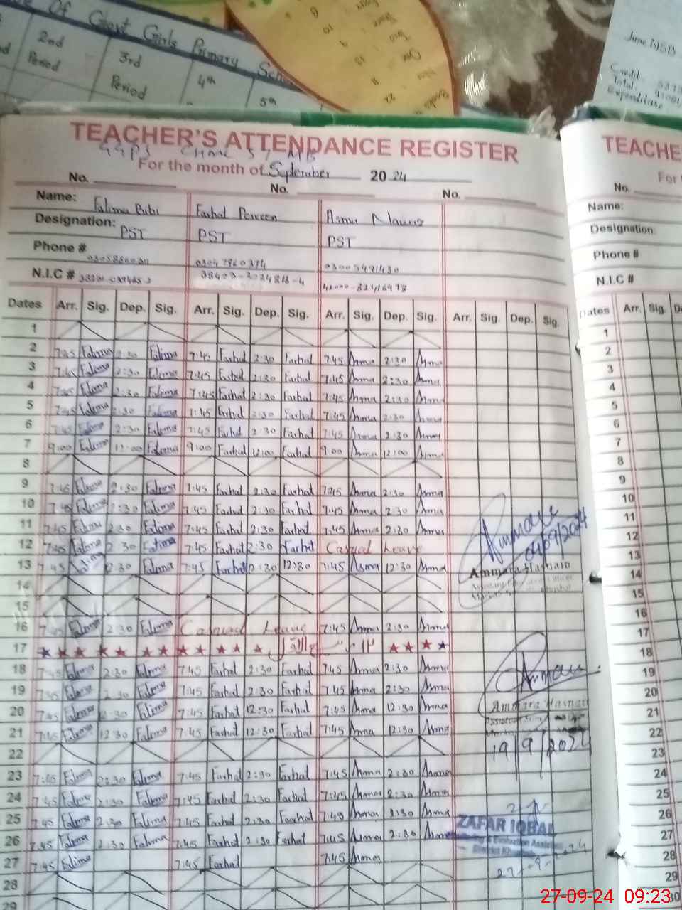 | Name: Fa**** bi**** Designation: (School Headmaster's/Headmistress's) PST Phone/Cell Number: 03**** |