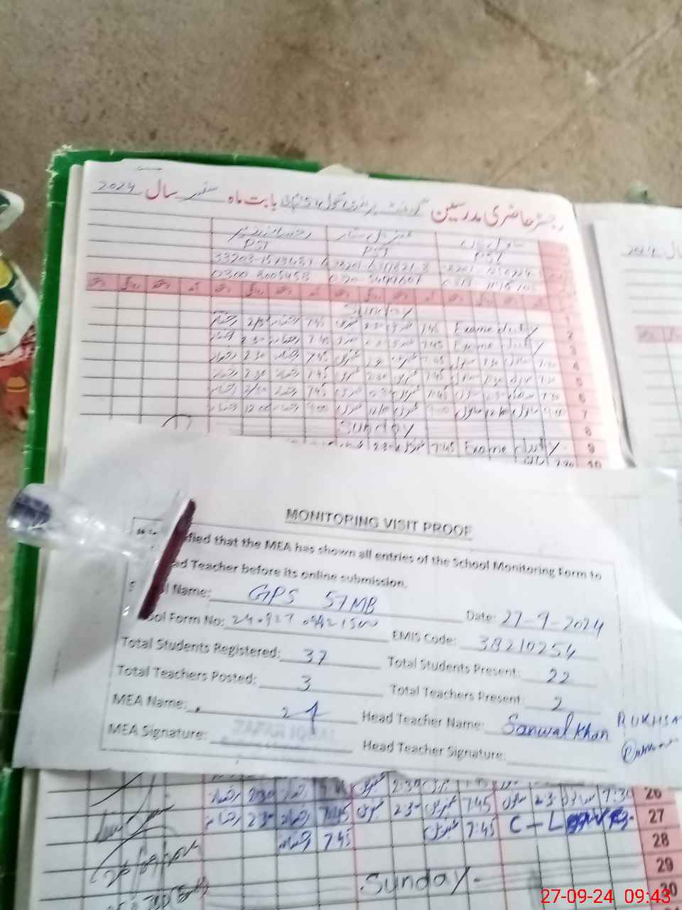 | EMIS Code: 38210254 | Name of School: GPS CHAK NO 57 MB | |||