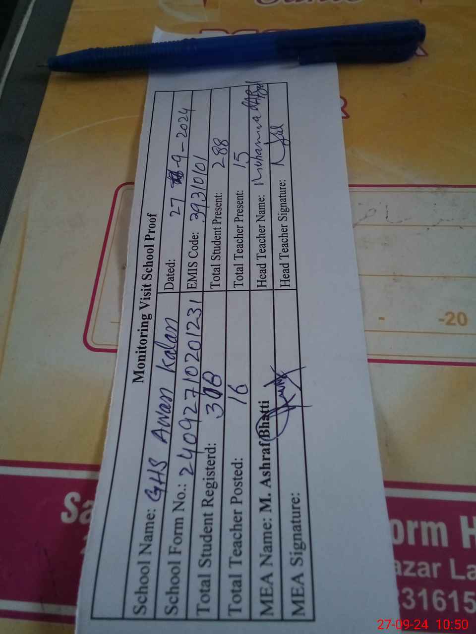 | EMIS Code: 39310101 | Name of School: GHS AWAN KALAN | |||