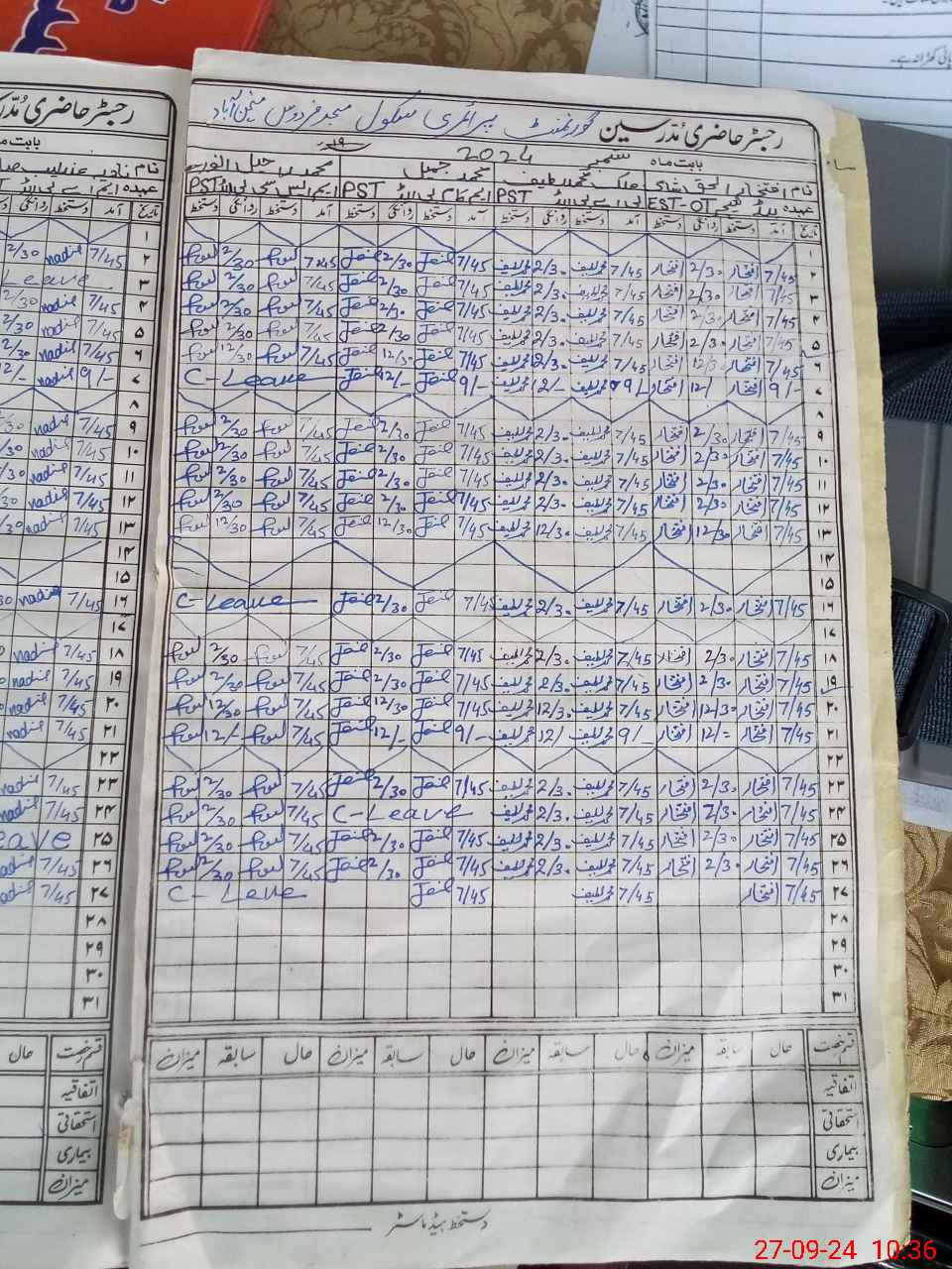 | Leave | Duty | Absent | Maternity | Medical | Ex- Pak |