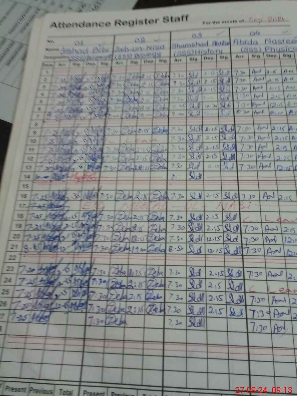 | CNIC | Full Name | Designation | R/C | Absence During Last Calender Month |